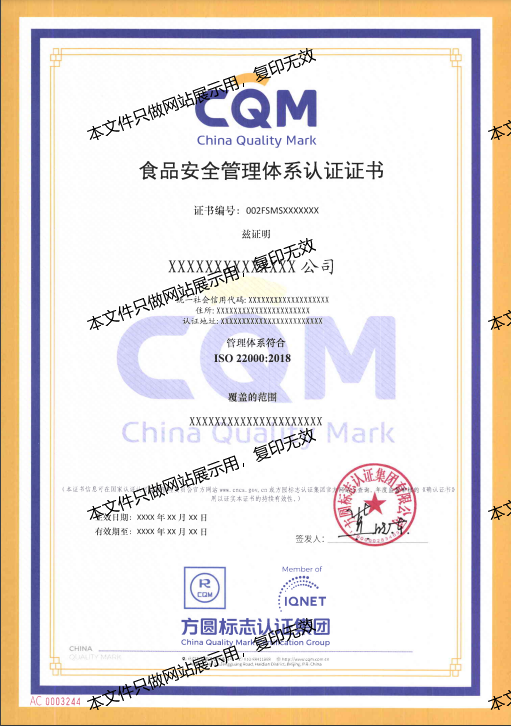 1. 認(rèn)證用標(biāo)準(zhǔn): 食品安全管理體系認(rèn)證 GB/T22000及相關(guān)專業(yè)專項(xiàng)技術(shù)要求