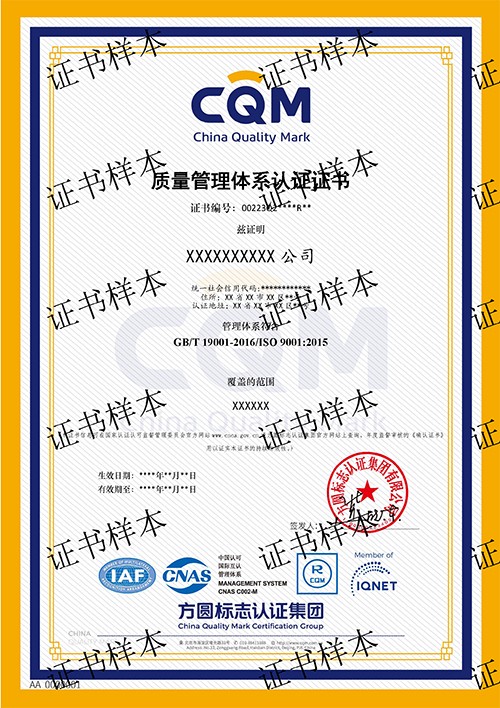 認(rèn)證用標(biāo)準(zhǔn): GB/T19001和 GB/T 50430